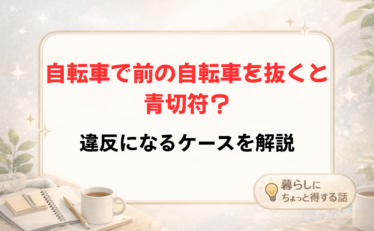 車道の左端を自転車で走っているとき、前の自転車が遅いと、「少し右にふくらんで抜いていいのか」と迷う場面があります。特に2026年4月1日から、16歳以上の自転車利用者にも青切符の制度が始まったことで、「もし違反だったらどうしよう」と不安に感...